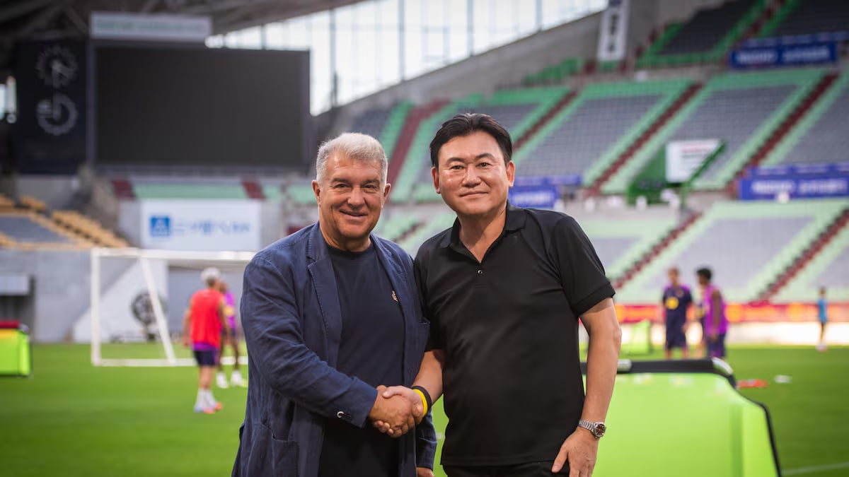 خوان لاپورتا، در اولین تمرین تیمش در ژاپن حضور داشت. او مدتی را با هانسی فلیک، سرمربی بارسلونا، گپ زد. گفت و گویی که جدی به نظر می رسید. همچنین هیروشی میکیتانی، مدیرعامل راکوتن و کسی که بازی دوستانه فردا برابر ویسل کوبه را نجات داد، نیز این جلسه تمرینی را از دست نداد.