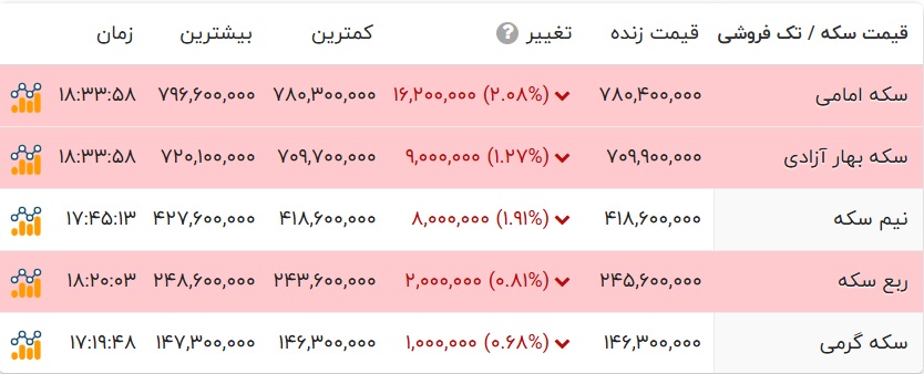قیمت طلا و انواع سکه را در جدول زیر مشاهده می کنید.