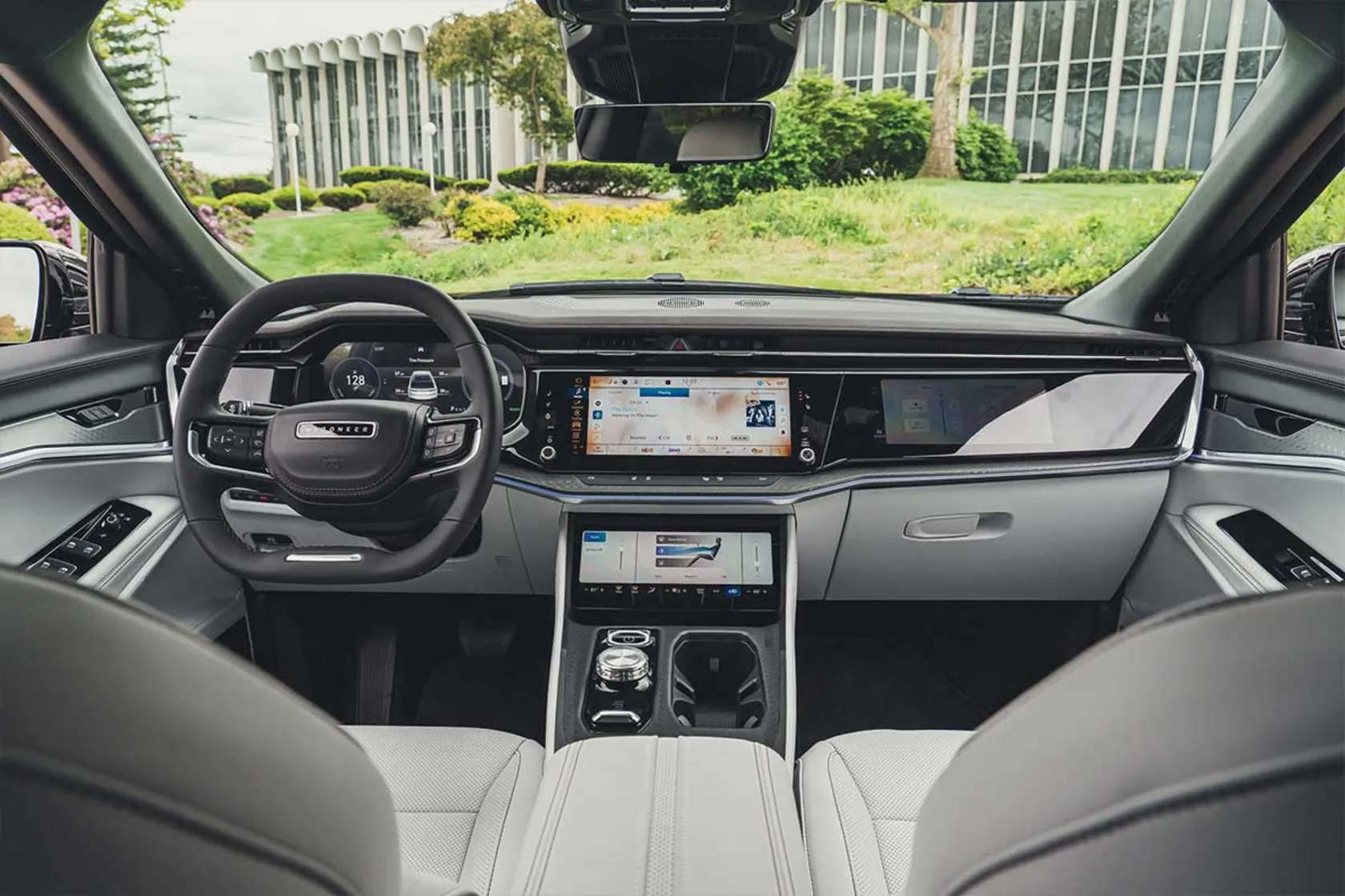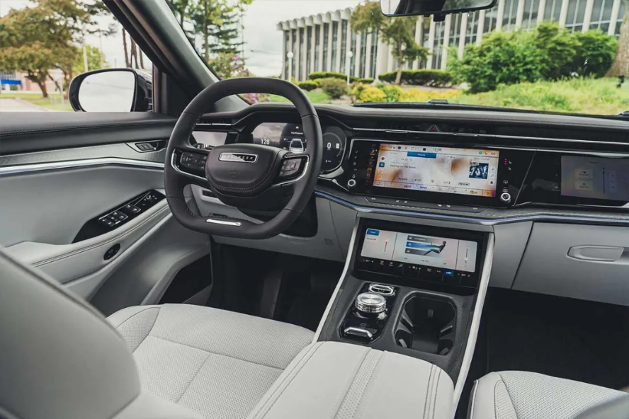 روبهروی راننده یک صفحه آمپر دیجیتالی 12.3 اینچی قرار دارد و در سمت راست آن یک صفحهنمایش لمسی مرکزی 12.3 اینچی برای سیستم اطلاعاتسرگرمی قرار گرفته است. زیر آن یک نمایشگر 10.3 اینچی کوچکتر برای تنظیمات تهویه، صندلیها و کنترلهای مرتبط وجود دارد و میتوان یک صفحهنمایش لمسی 10.3 اینچی را هم برای سرنشین جلو سفارش داد. خودروی تست ما این آپشن را بهعنوان بخشی از پکیج 4 هزار دلاری کامفورت داشت که شامل تهویهٔ صندلیهای جلو، درب عقب برقی خودکار، ستون فرمان برقی با قابلیت تنظیم و حافظه، نمایشگر هدآپ و سیستم صوتی 19 بلندگوی مکینتاش فوقالعاده میشود.