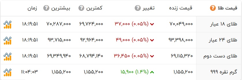 قیمت طلا و انواع سکه را در جدول زیر مشاهده می کنید.