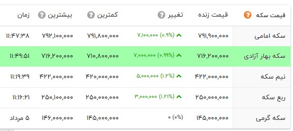 قیمت طلا و انواع سکه را در جدول زیر مشاهده می کنید.