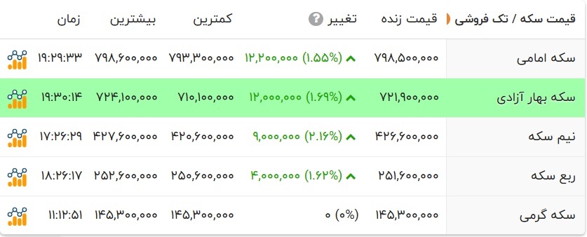قیمت طلا و انواع سکه را در جدول زیر مشاهده می کنید.