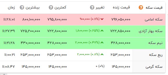 قیمت طلا و انواع سکه را در جدول زیر مشاهده می کنید.