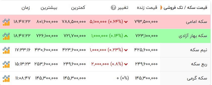 قیمت طلا و انواع سکه را در جدول زیر مشاهده می کنید.