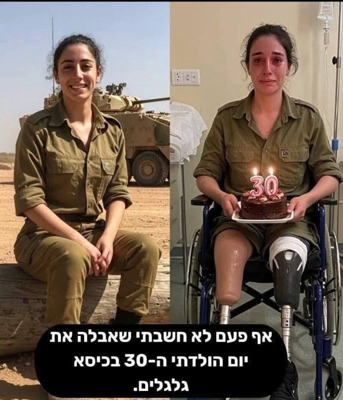 فرهیختگان/نظامی زن صهیونیست که در جنگ غزه و جنایات علیه غیرنظامیان فلسطینی مشارکت داشته و هر دو پای خود را در غزه از دست داده است.