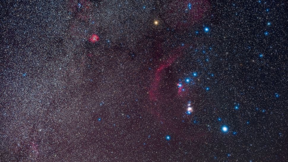 اوریون مانند یک جواهر غولپیکر، شکارچی بزرگ یا جنگجوی آسمانی، درخشانترین و باشکوهترین صورت فلکی است. سه ستاره درخشان در یک خط در وسط یک مستطیل روشن، کمربند اوریون را تزئین میکنند و از هر نقطه مسکونی زمین قابل مشاهده هستند. در صورت فلکی اوریون، دو ستاره عظیم، رجلالجبار و ابطالجوزا، ظاهرا در دو دوره کاملا متفاوت از وجود یک ستاره یافت میشوند. در رجلالجبار، ستارهای را میبینیم که ظاهرا به اوج زندگی خود میرسد. این یک ابرغول واقعی است. یک ستاره سفید داغ و سوزان با درخشندگی شدید و زیبایی خیرهکننده. درخشندگی محاسبهشده این ستاره که در فاصله ۸۷۰ سال نوری از ما قرار دارد، تقریبا 47 هزار برابر درخشندگی خورشید ماست. در مقابل، ابطالجوزا با رنگی سرد و سرخ و کدر میدرخشد و تقریبا ۵۵۰ سال نوری از ما فاصله دارد. این ستاره، یک ابرغول تپنده نامنظم است که به پایان عمر خود نزدیک میشود و به همین دلیل به طور نامنظم منبسط و منقبض میشود. به طرز باورنکردنی، قطر آن میتواند تا ۱۰۰۰ برابر قطر خورشید ما افزایش یابد.