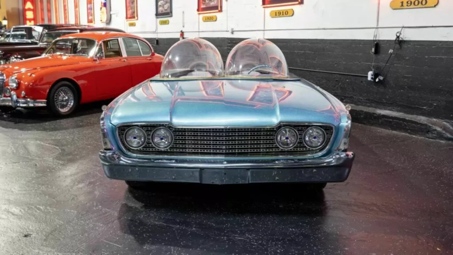 این خودروی آبی کلاسیک با سقف حبابی و خطوط آیندهنگرانهاش، بیشتر شبیه ماشینی است که باید در یک فیلم علمی–تخیلی یا یک انیمشین کودکانه حضور داشته باشد تا در خیابانهای شهری آمریکا! اما خبری از فیلم نیست؛ این فورد فیرلین خاص یک مدل واقعی است که بهزودی و در ماه سپتامبر بهعنوان بخشی از مجموعه بزرگ «لری کلایرمونت» به حراج گذاشته شود و انتظار میرود توجه زیادی را به خود جلب کند. این نمونه خاص که لقب «اسپیسلاینر» را هم دارد، تفسیر دوبارهای از آمریکای قرن بیستم و عصر اتمی این کشور به شمار میرود.