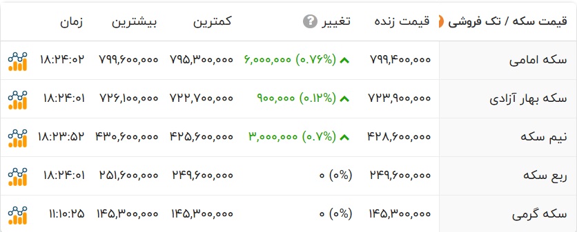 قیمت طلا و انواع سکه را در جدول زیر مشاهده می کنید.