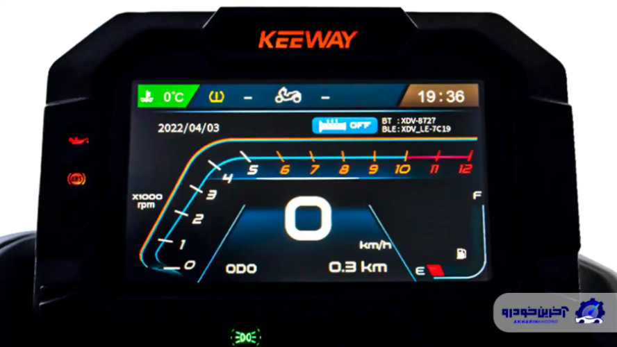 صفحه کیلومتر موتور سیکلت XDV 250 یکی از نقاط قوت آن محسوب میشود، چرا که ما شاهد یک نمایشگر تمام رنگی از نوع تی اف تی هستیم که تا حدودی اطلاعات کاملی را در اختیار راکب قرار میدهد. در این صفحه کیلومتر اطلاعاتی مانند فشار باد تایرها، تاریخ، ساعت، میزان بنزین، دمای انجین و حتی مصرف لحظهای بنزین قابل مشاهده است و با استفاده از بلوتوث میتوان به این پنل متصل شد و به امکانات پیشرفتهای مثل تماس دسترسی پیدا کرد. در کنار این صفحه کیلومتر شاهد یک پورت برق ۱۲ ولتی هستیم که امکان شارژ لوازم جانبی مثل تلفن همراه را فراهم میکند و همواره میتوانید به برق دسترسی داشته باشید.