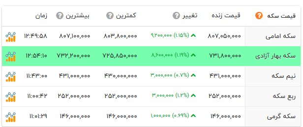 نیم سکه و ربع سکه با رشد 300 هزار تومانی قیمت به ترتیب، 43 میلیون و 100 هزار تومان و 25 میلیون و 200 هزار تومان به فروش می رسد.