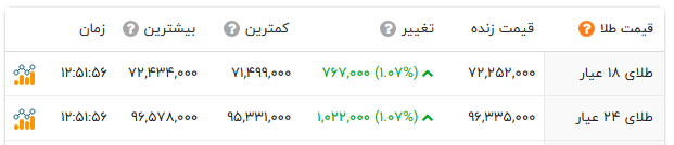 هر گرم طلای 18 عیار با رشد 76 هزار و 700 تومانی قیمت، 7 میلیون و 225 هزار و 200 تومان در طلافروشی ها معامله می شود.