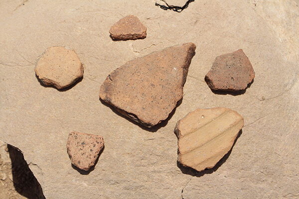 نمونهای از سفالهای محوطه باستانی در حاشیه دریاچه بختگان