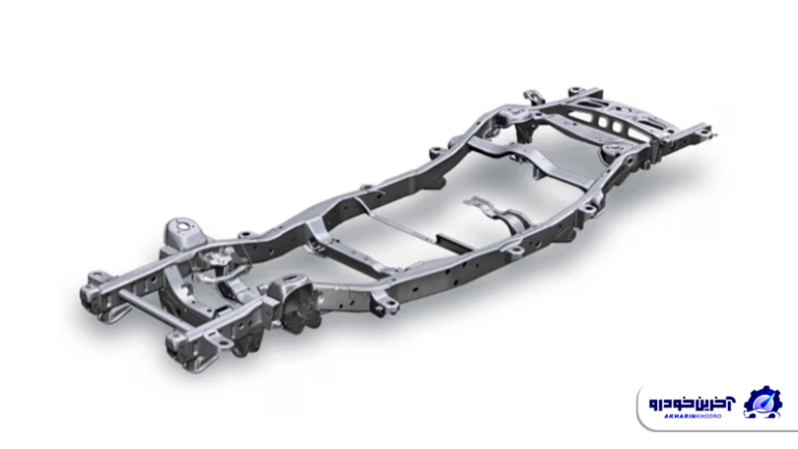 در این مدل، بخشهای طولی شاسی کمی خمیده میشوند تا با محیط بدنه همراستا باشند. این طراحی باعث میشود مرکز ثقل کمی پایینتر بیاید و فضای کابین کاربردیتر شود در حالی که همچنان استحکام بالای فریم حفظ میشود.