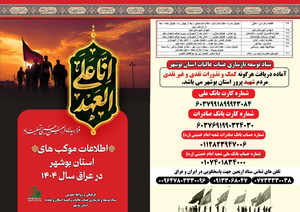 فارس/ ستاد توسعه و بازسازی عتبات عالیات و کمیته اسکان و تغذیه استان بوشهر اطلاعات موکبهای این استان در کشور عراق و مرز شلمچه را اعلام کرد.