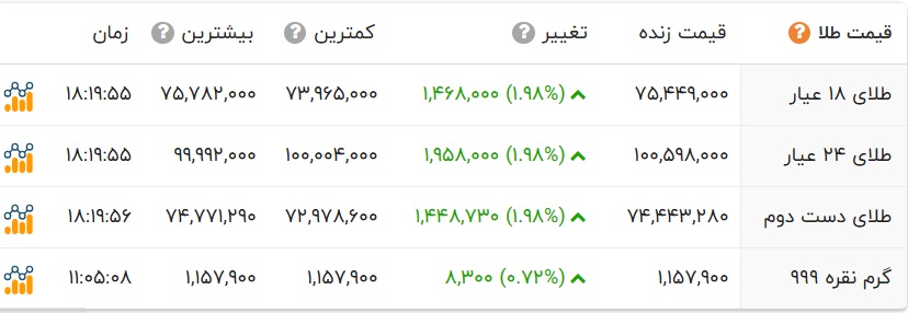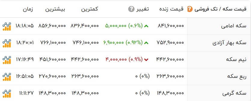 قیمت طلا و انواع سکه را در جدول زیر مشاهده می کنید.