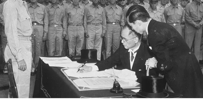 ژاپن در مورخ یکشنبه ۱۱ شهریور ۱۳۲۴ سند تسلیم در جنگ جهانی دوم را امضا کرد