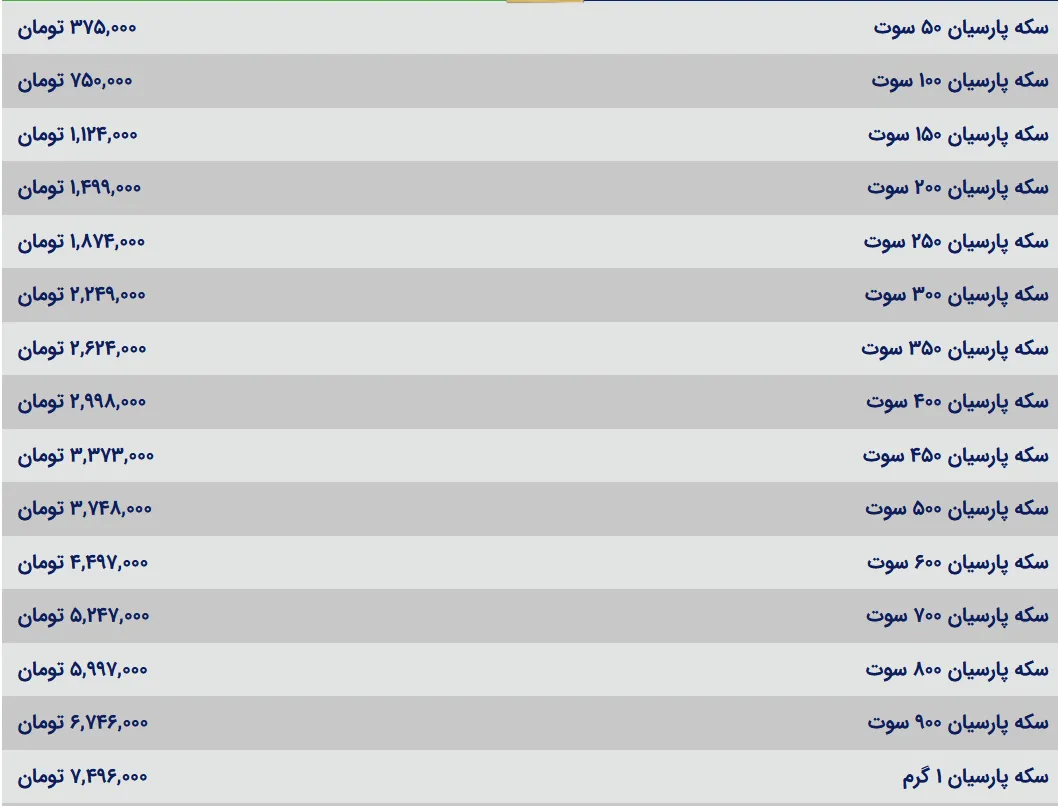 قیمت سکه پارسیان امروز دوشنبه ۱۳ مرداد ۱۴۰۴