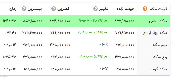 قیمت طلا و انواع سکه را در جدول زیر مشاهده می کنید.