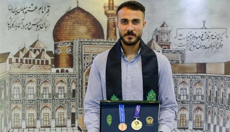 اهدای مدال قهرمانی ملیپوش فوتبال ساحلی به موزه آستان قدس
