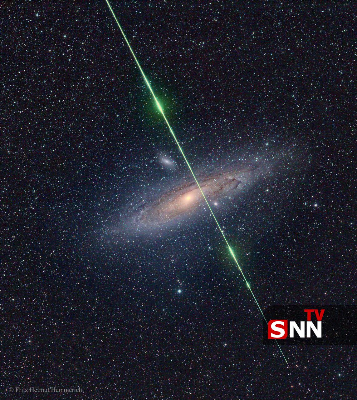 عبور شهابسنگ سبز رنگ از مقابل کهکشان آندرومدا