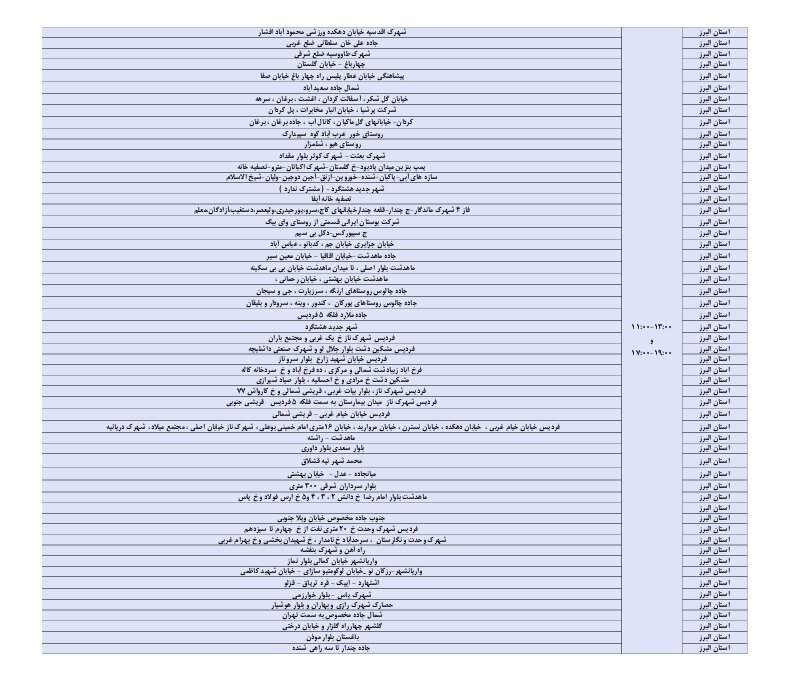 اعلام ساعات خاموشی برق البرز در ۱۸ مرداد