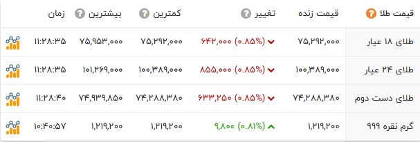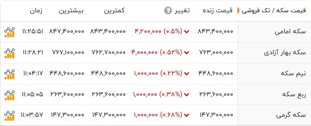 قیمت طلا و انواع سکه را در جدول زیر مشاهده می کنید.