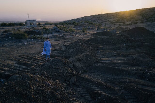 نیروی امدادی در کنار یک گور دستهجمعی