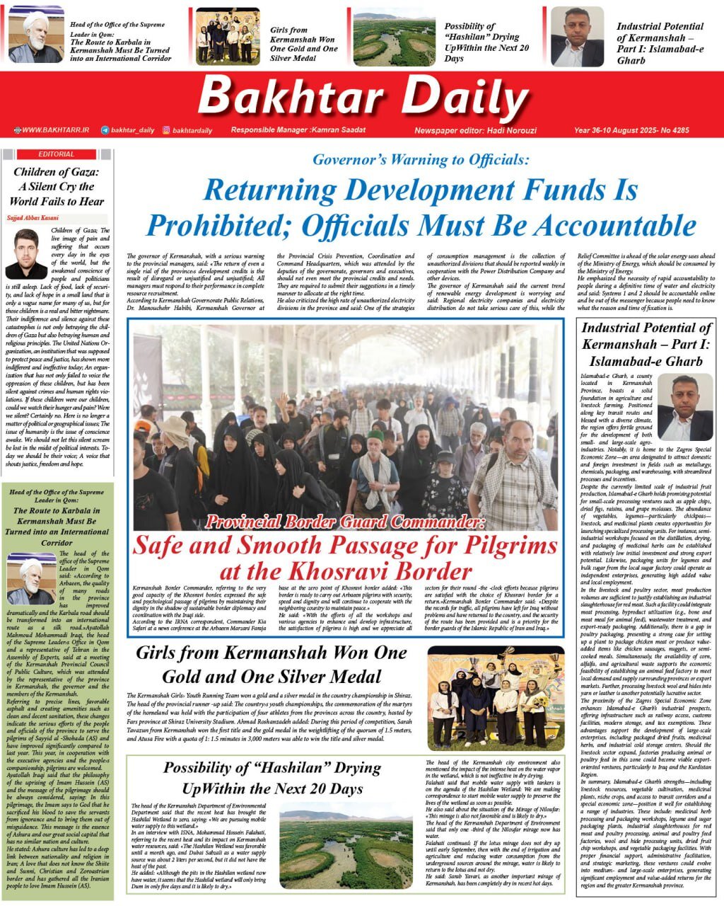 صفحه اول روزنامه ابتکار یکشنبه ۱۹ مرداد