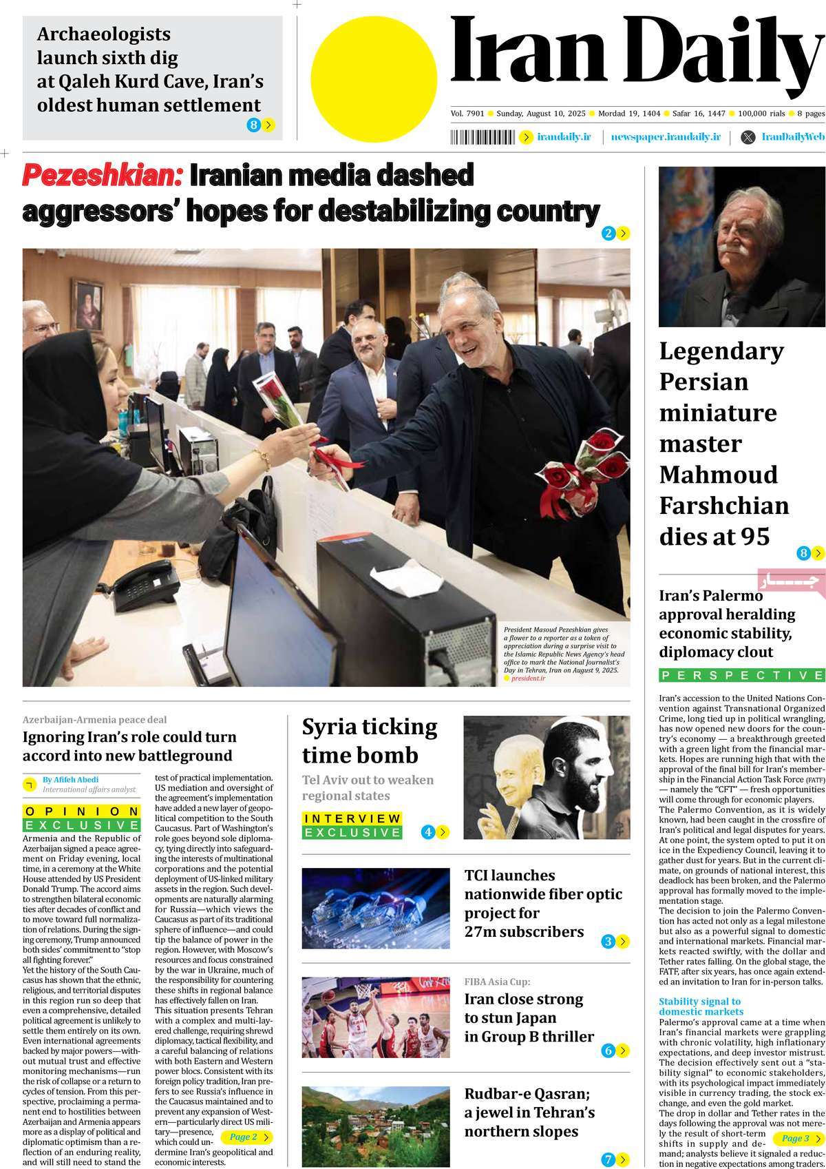 صفحه اول روزنامه Iran Daily یکشنبه ۱۹ مرداد