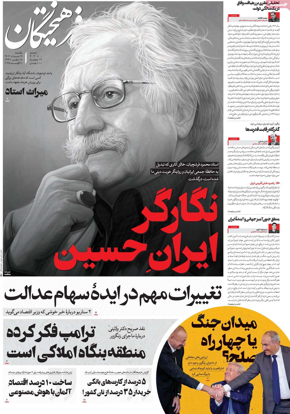 صفحه اول روزنامه اقتصاد مردم یکشنبه ۱۹ مرداد