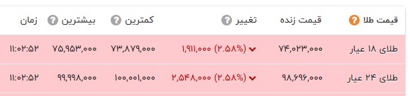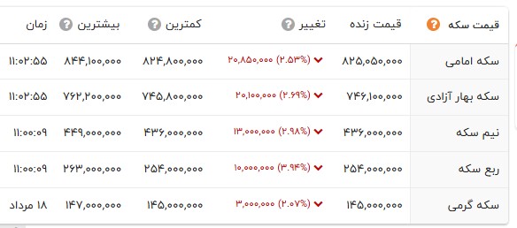 قیمت طلا و انواع سکه را در جدول زیر مشاهده می کنید.