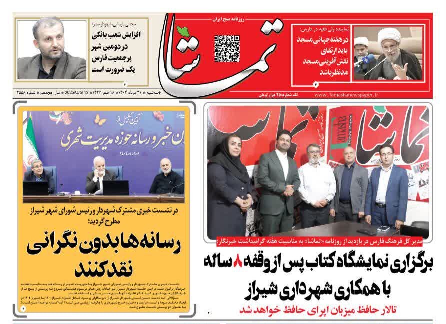 صفحه نخست روزنامه‌های استان فارس در ۲۱ مردادماه