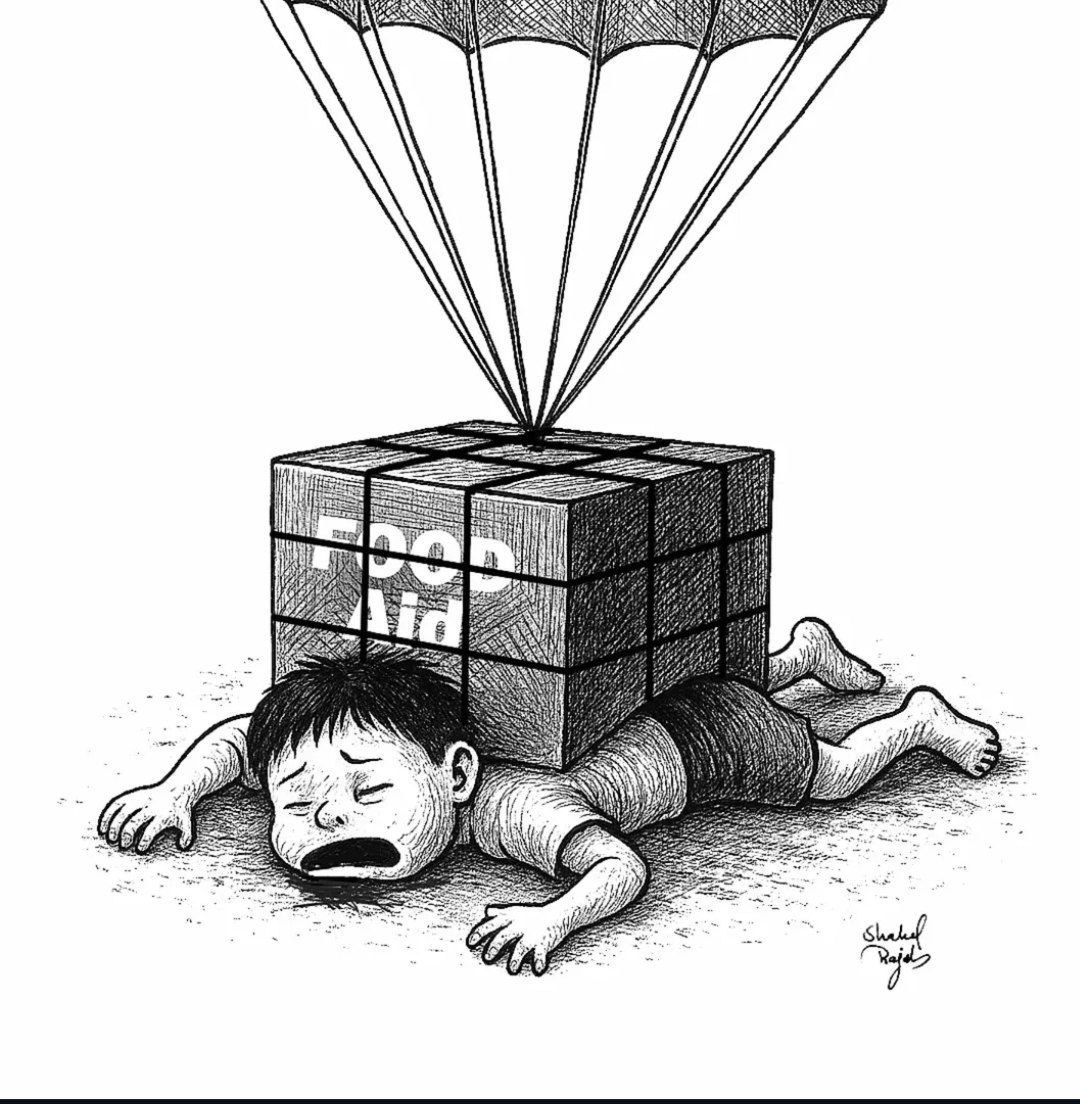 آخرین خبر/  اعتراض شهد رجب کاریکاتوریست به کمک‌های بشردوستانه‌ای که از طریق هواپیما بر سر مردم غزه آوار شد
