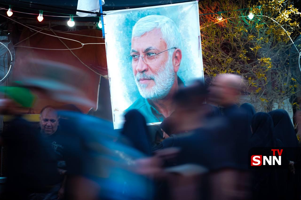 تصاویری از شهیدان ابومهدی المهندس و یحیی سنوار در حاشیه پیاده‌روی اربعین