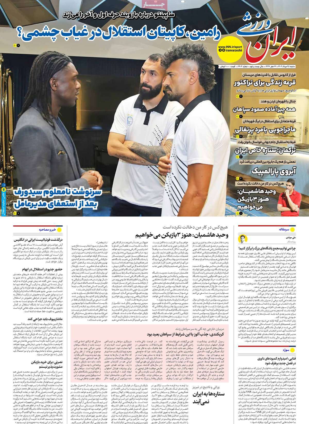 صفحه اول روزنامه ایران ورزشی شنبه ۲۵ مرداد