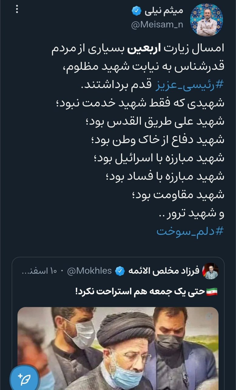«امسال زیارت اربعین بسیاری از مردم قدرشناس به نیابت شهید مظلوم، رئیسی عزیز قدم برداشتند.