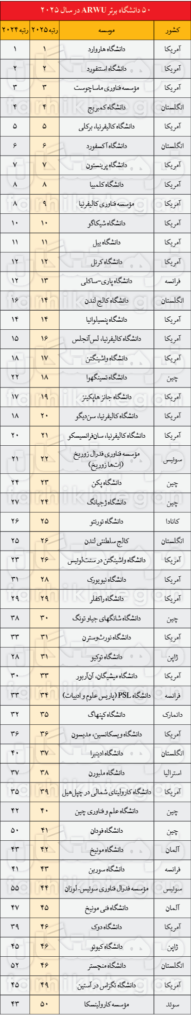 برترینها از نگاه ARWU 2025