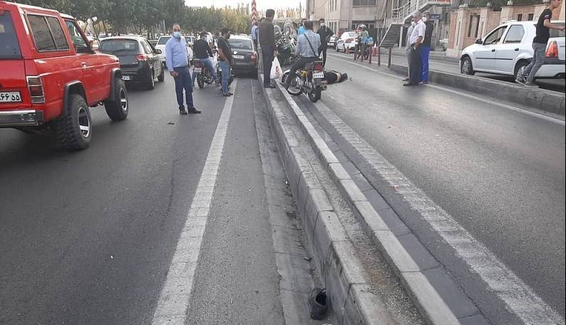 برخورد شدید موتورسیکلت با خودروی تیبا