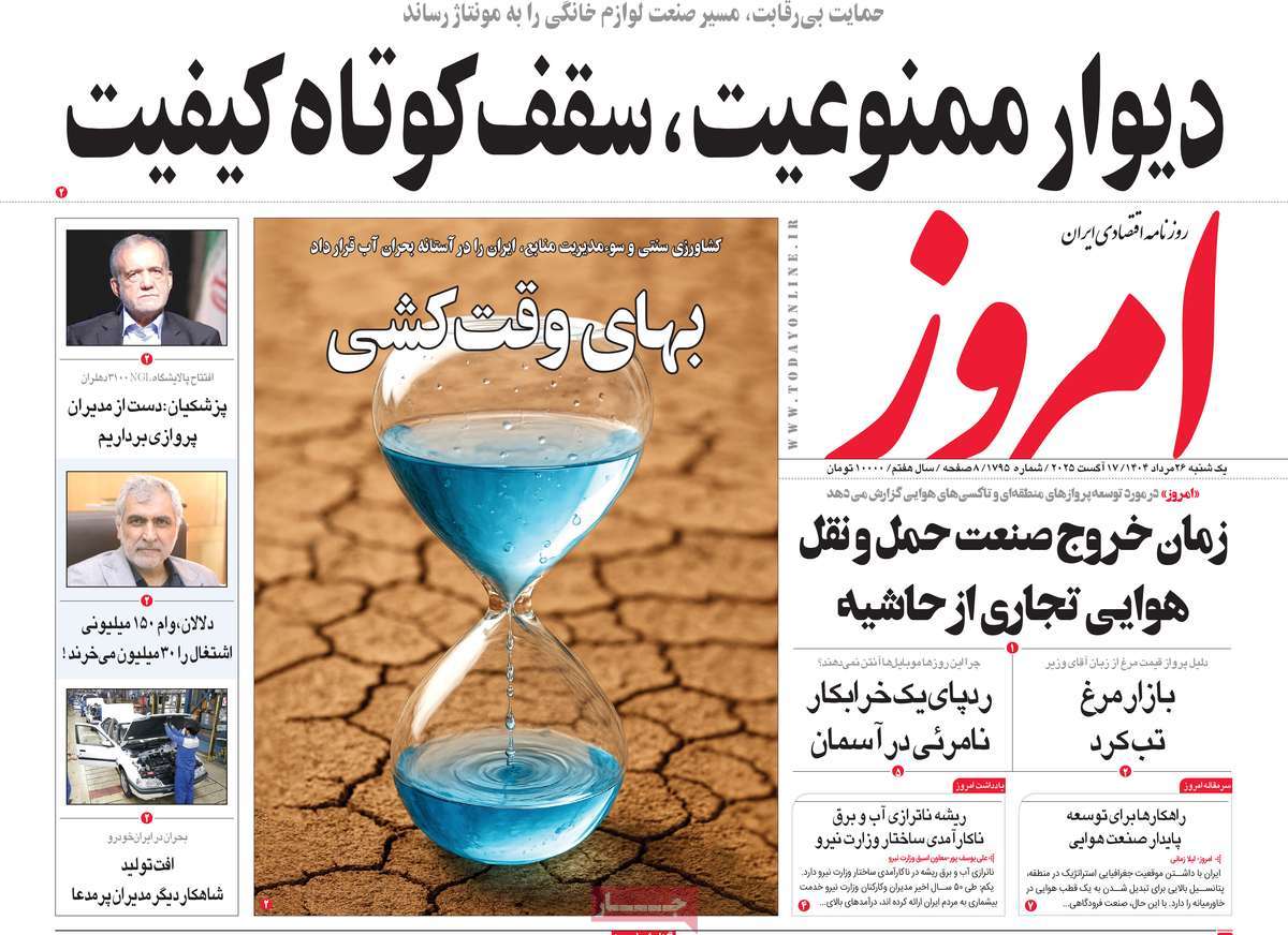 صفحه اول روزنامه امروز یکشنبه ۲۶ مرداد