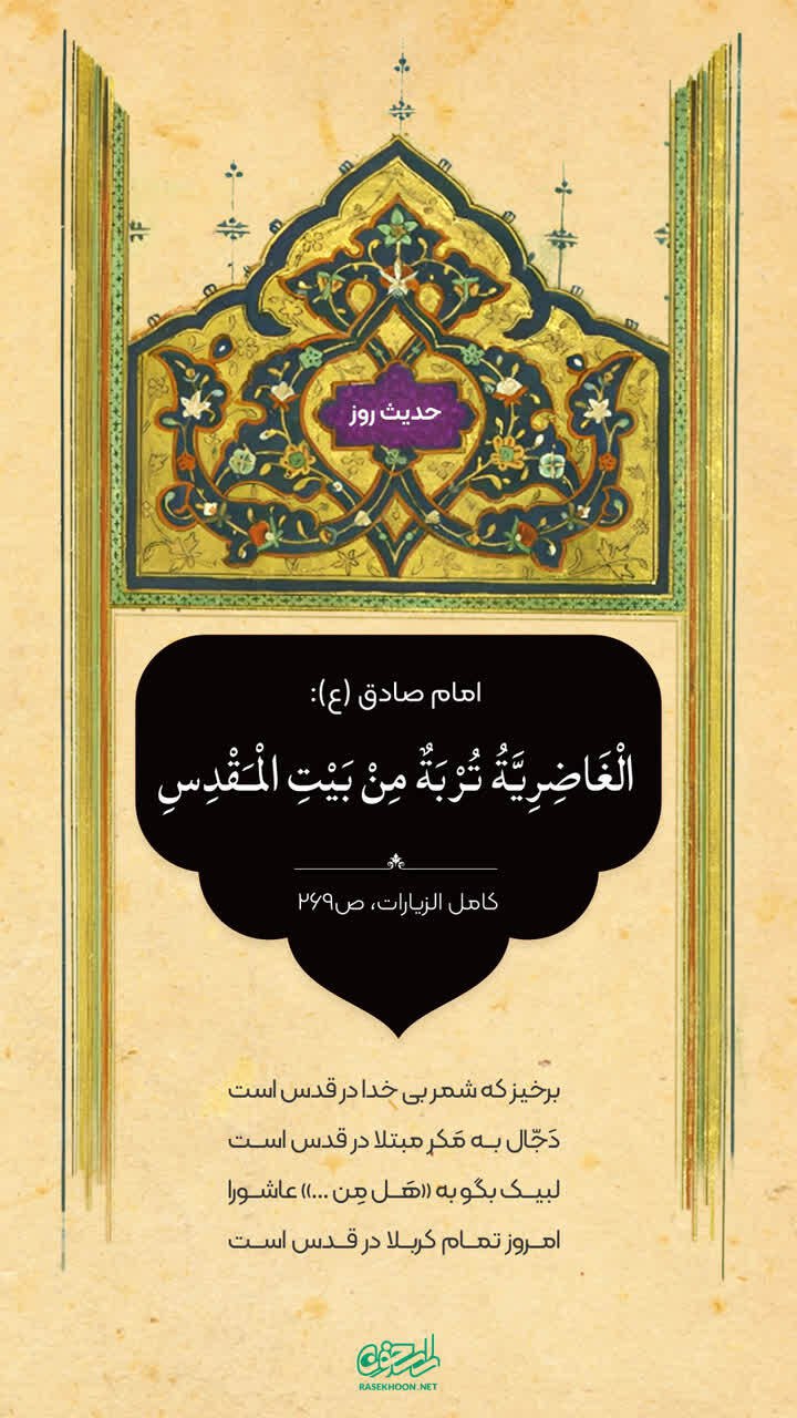 راسخون/ امام صادق (ع): الْغَاضِرِیَّةُ تُرْبَةٌ مِنْ بَیْتِ الْمَقْدِسِ