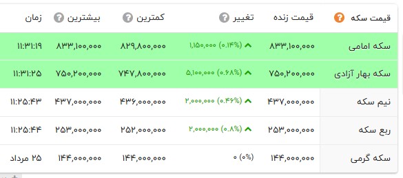 قیمت طلا و انواع سکه را در جدول زیر مشاهده می کنید.