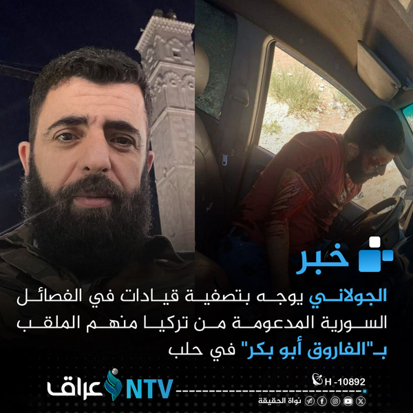 در ادامه ناآرامیها و ناامنیها در دوران حکومت «ابو محمد الجولانی» سرکرده شورشیان مسلح حاکم بر دمشق، یکی از سرکردههای وابسته به ترکیه کشته شد.منابع خبری گزارش دادند «الفاروق ابوبکر» یکی از سرکردههای گروه موسوم به «ارتش ملی» وابسته به ترکیه امروز یکشنبه در شهر اعزاز واقع در شمال حلب کشته شده است.