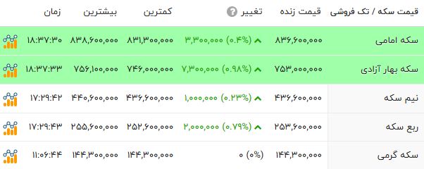 قیمت طلا و انواع سکه را در جدول زیر مشاهده میکنید.