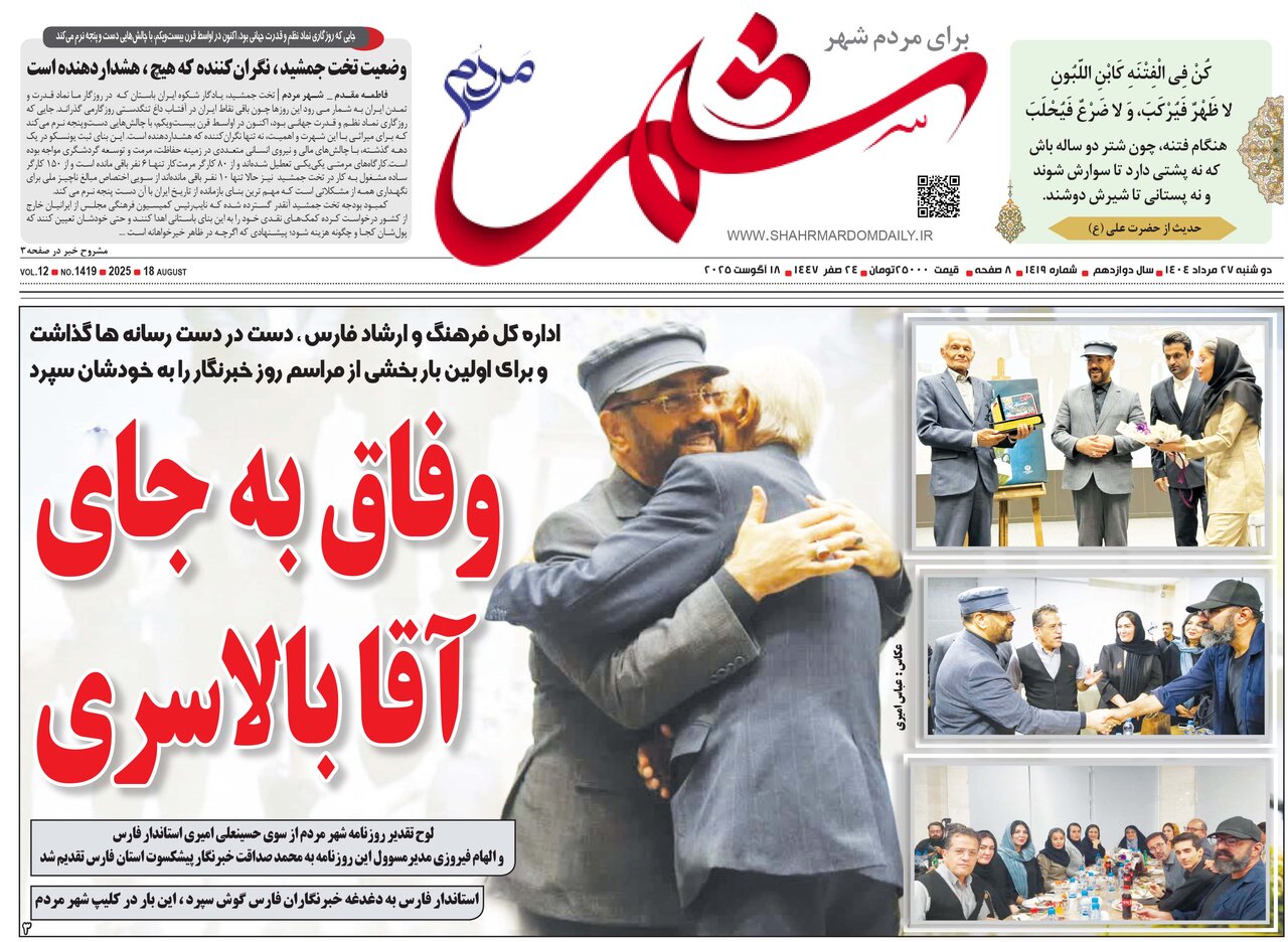 صفحه نخست روزنامه‌های استان فارس در ۲۷ مرداد