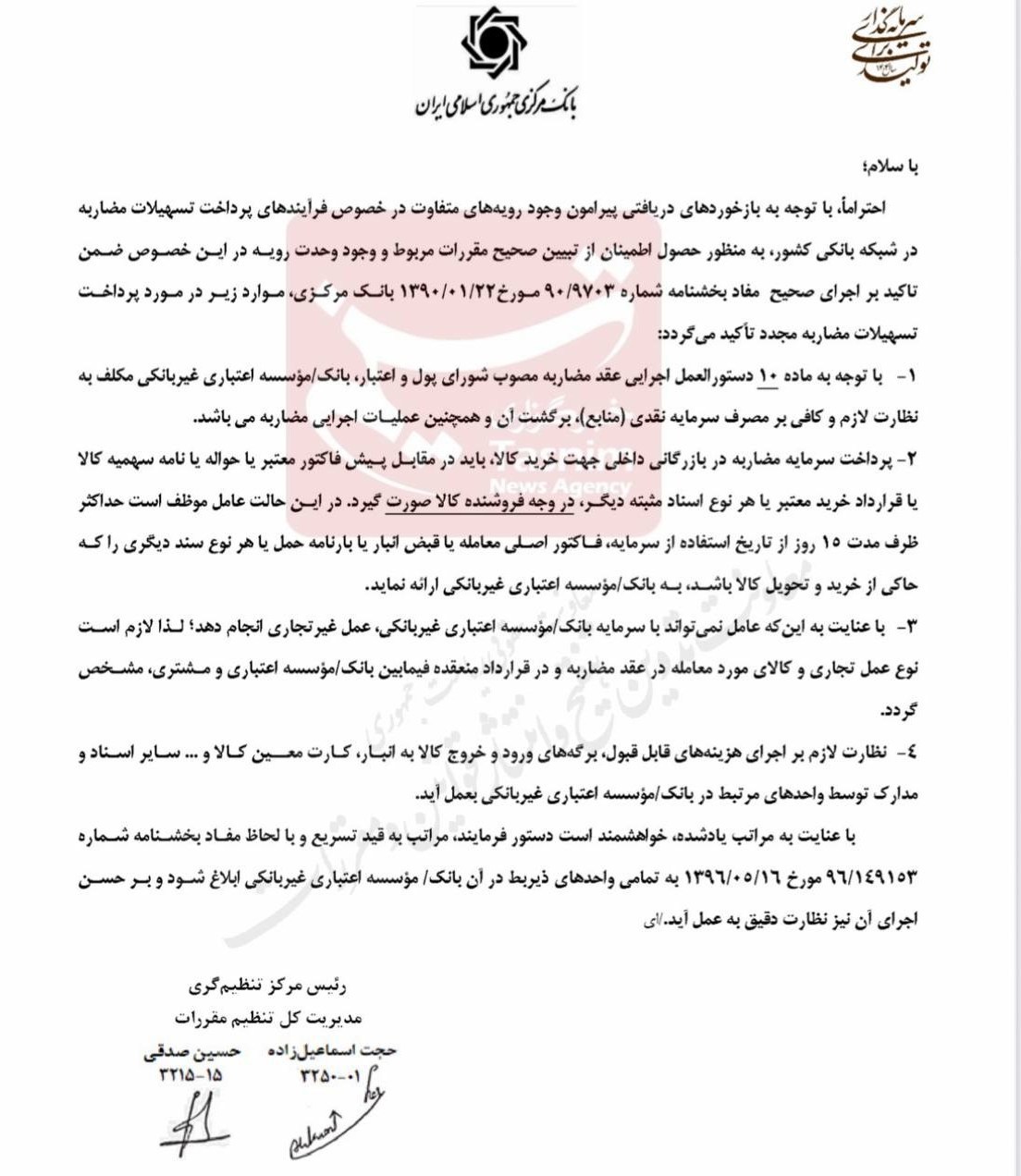 بانک مرکزی در ابلاغیهای خطاب به تمامی بانکها و مؤسسات اعتباری غیربانکی، با اشاره به بازخوردهای دریافتی مبنی بر وجود رویههای متفاوت در فرآیند پرداخت تسهیلات مضاربه، خواستار اجرای دقیق مفاد بخشنامه شماره 90/9703 مورخ 22 فروردین 1390 و رعایت موارد زیر شد: