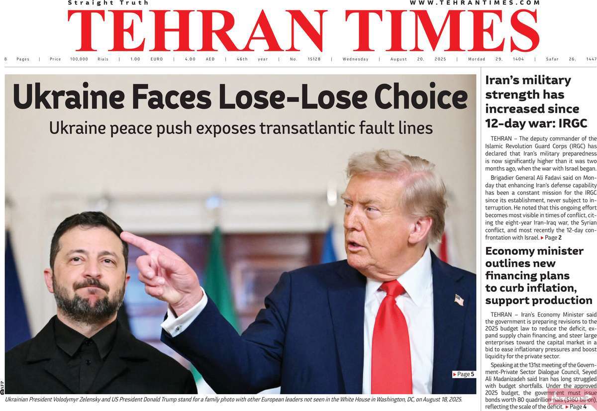 صفحه اول روزنامه وطن امروز چهارشنبه ۲۹ مرداد