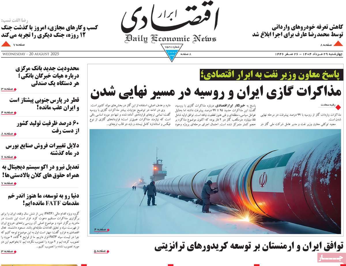 صفحه اول روزنامه وطن امروز چهارشنبه ۲۹ مرداد