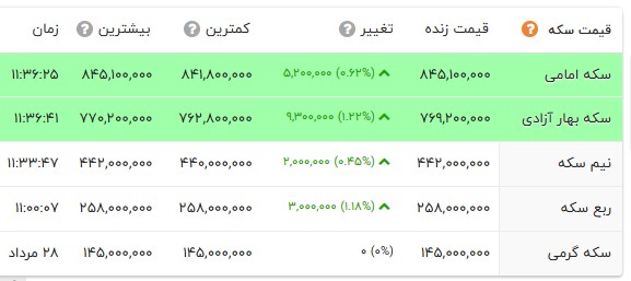 قیمت طلا و انواع سکه را در جدول زیر مشاهده می کنید.