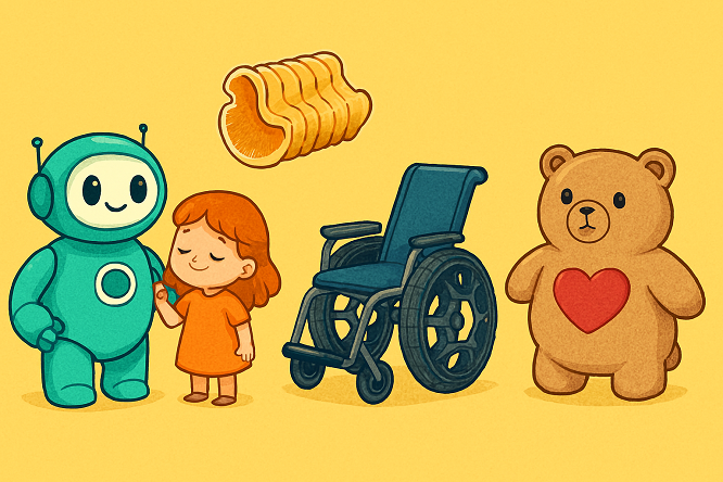 یک دخترکوچولو مدتی در بیمارستان بستری بود و بهسختی غذا میخورد. یکروز کارکنان بیمارستان، «رابین روبات» را به اتاق دختر بردند. رابین با دخترک گپ زد و بازی کرد و به او قول داد اگر بهخوبی غذا بخورد، باز هم پیشش برمیگردد. رابین، یک روبات دوستداشتنی با چشمهای درشت است که برای کمک به بچههای بستری در بیمارستانها طراحی شدهاست.