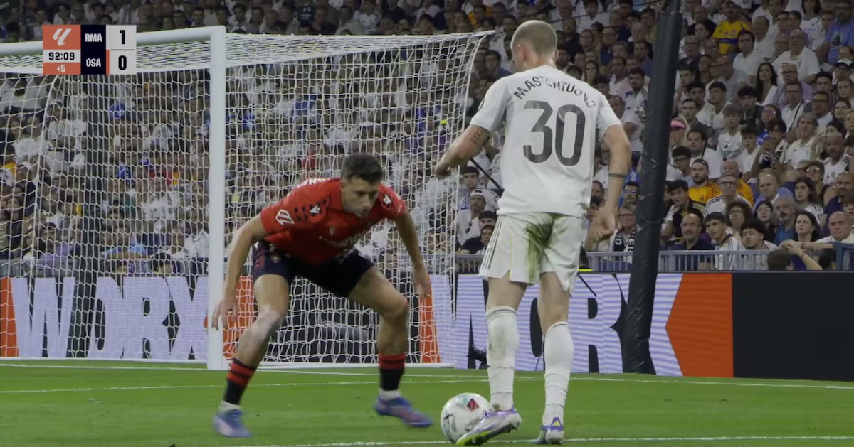 کلارین گزارش داد که ورود ماستانتونو در دقیقه 22 نیمه دوم با تشویق هواداران همراه بود که نام او را فریاد میزدند. رئال با گل پنالتی کیلیان امباپه 1-0 پیروز شد، اما حضور ماستانتونو شور و شوق زیادی ایجاد کرد.